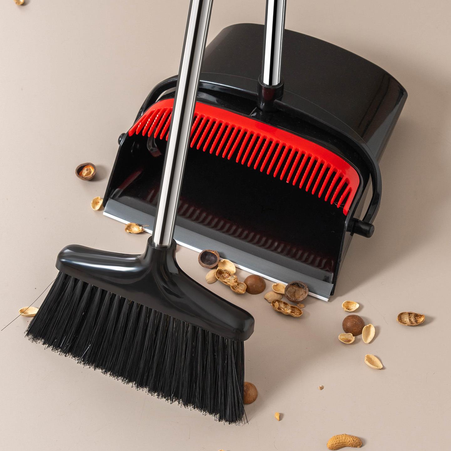 Limpeza sem dobras: vassoura e pá de lixo, alças ajustáveis ​​com espaço para variedade com base em suas necessidades oferecem uma varredura confortável sem ter que se curvar. Construção robusta e material à prova de ferrugemAtualizar cerdas de vassoura resistentes: a vassoura com conjunto de pá de lixo é feita de cerdas de alta qualidade/macias e resistentes que podem efetivamente agarrar poeira e sujeira, cabeça de vassoura de lobby de tamanho completo e pá de grande capacidade perfeita para varrer grandes áreasDentes de pá de lixo: a pá de lixo construída nos dentes do pente é fácil de raspar o cabelo e o lixo das cerdas da vassoura na pá de lixo, negando a necessidade de arrastar à mão, tornando a vassoura e a pá mais fáceis de limparFácil armazenamento em pé: o recurso de encaixe torna a vassoura e a pá na posição vertical um espaço perfeito e mais seguro! O armazenamento compacto mantém sua casa ou espaço de trabalho limpo e arrumado. Funciona perfeitamente para várias superfícies, adequado para uso interno. Cerdas mais rígidas e bordas emborrachadas na pá estendida evitam que a poeira escorregue. As vassouras manuais são excelentes em superfícies de azulejos, proporcionando desempenho de limpeza superior. Um pente com dentes mais finos ajuda a capturar detritos menores e remover pelos de animais de estimação do chão e das mesas, tornando o processo de limpeza mais eficiente
