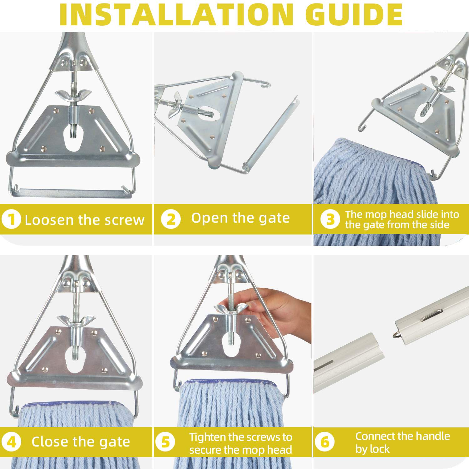 Esfregona com braçadeira de anel atualizada: esta esfregona resistente apresenta uma estrutura de braçadeira de anel recém-atualizada que mantém a cabeça do esfregão no lugar com segurança, tornando-a mais durável e estável do que outras braçadeiras de plástico. Portanto, você não precisa se preocupar com a possibilidade de a cabeça do esfregão cair ou se soltar durante o uso. Fácil de instalar e remover, compatível com a maioria dos esfregões, como esfregões de algodão, corda, em forma de anel e microfibra.